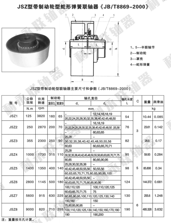 JSZ型帶制動輪型蛇形彈簧聯軸器